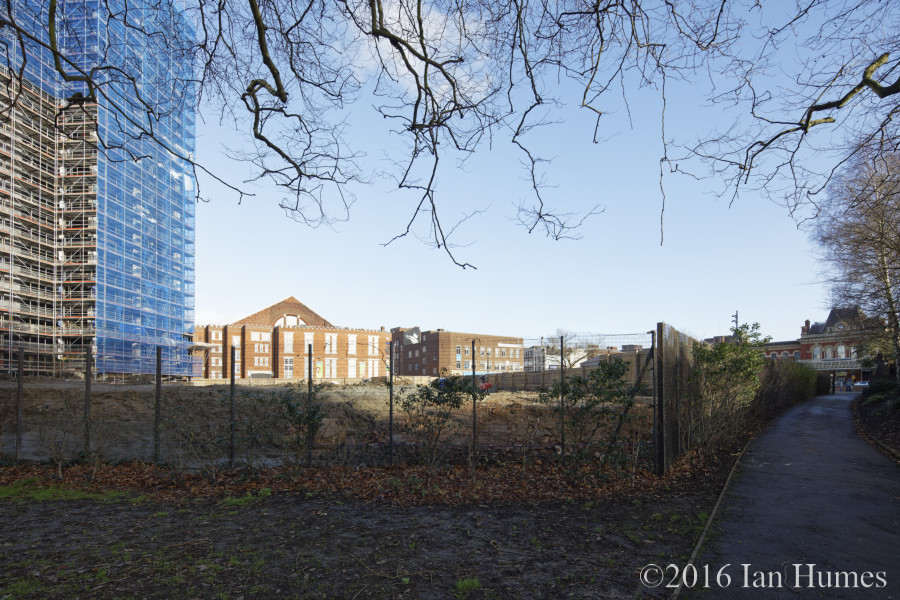 Stanhope House existing view from Portsmouth Guildhall across the railway lines.