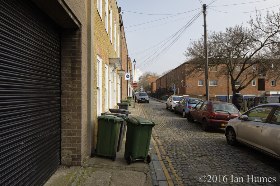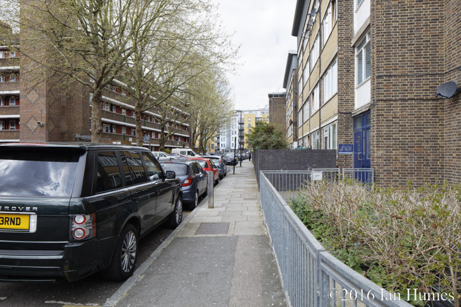 Sun Wharf existing view from junction of Crossfields Estate and Creekside.