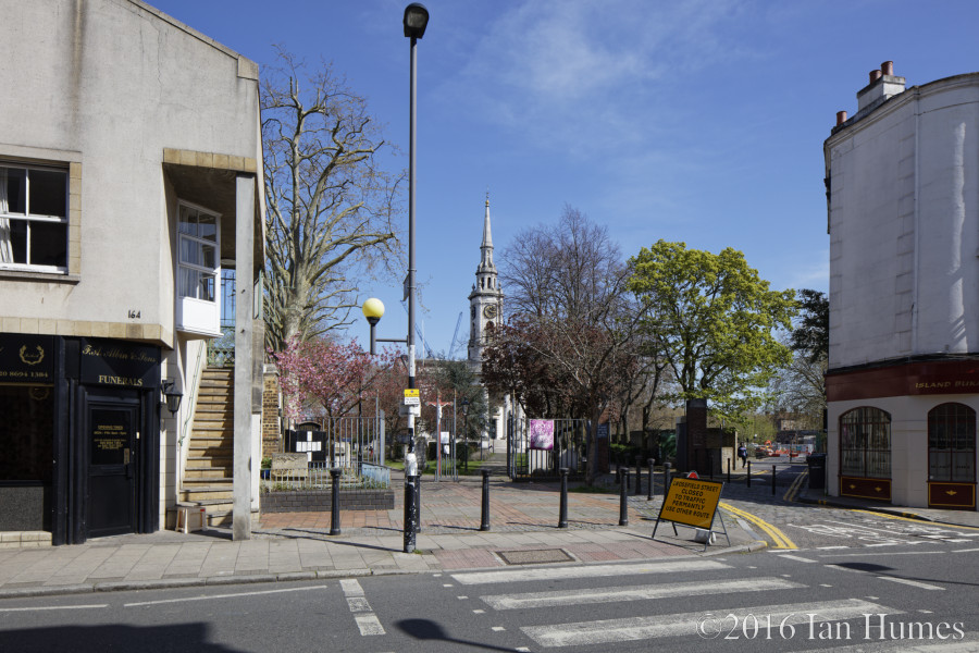 Sun Wharf existing view from Deptford High Street towards St Paul’s Church.