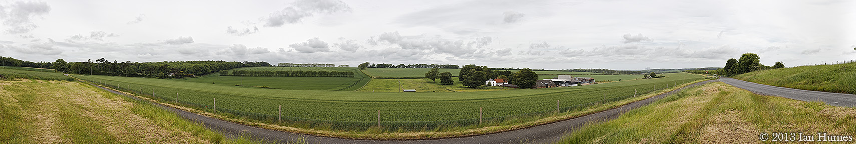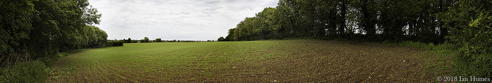 Farm fields with growing crops near Braintree next to the Fitch Way. The image is 225° x 38° and was stitched from 17 photographs.