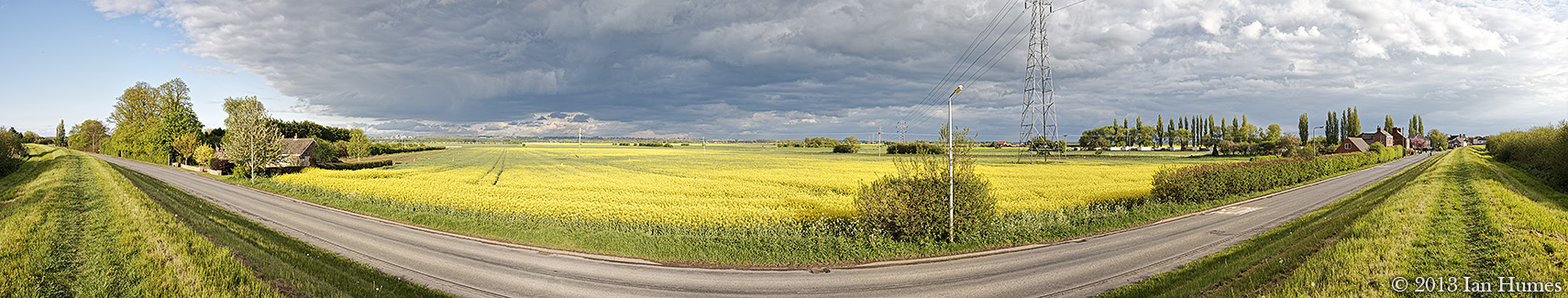 This panorama shows the fields near to Snailwell in Cambridgeshire. The image is 225° x 38° and was stitched from 17 photographs.