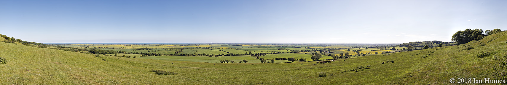 From the footpath near Hoe Court in West Sussex looking towards the A27 and Lancing Airport. The image is 225° x 38° and was stitched from 14 photographs.